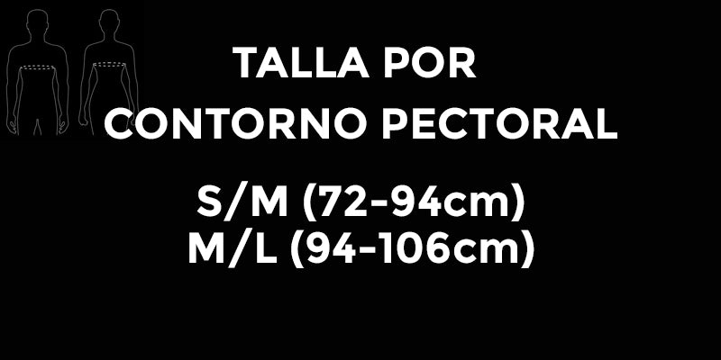 • Disponible en 2 tallas dependiendo el contorno de pecho: S/M (72-94cm), M/L (94-106cm)