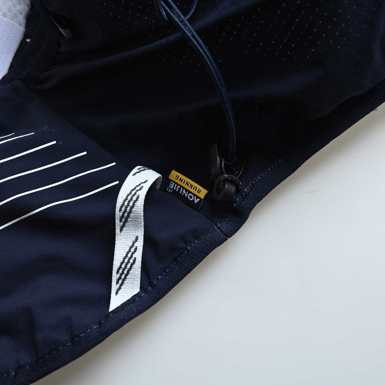 Dos bolsillos delanteros de malla expansible con capacidad para dos soft flask de 500ml, y goma elástica con tirador reflectante para sujetar el soft flask doblemente, cierre bolsillo elástico y goma elástica.
