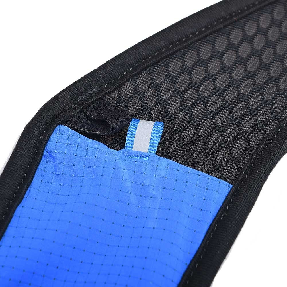 - Dos bolsillos delanteros de malla expandible y cierre de seguridad con goma con capacidad para dos soft flask AONIJIE 420ml y 500ml Antimicrobiano 360º (no incluidas)