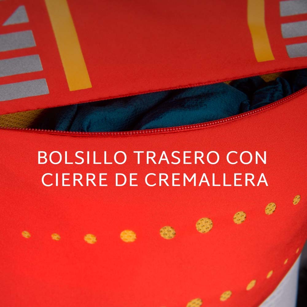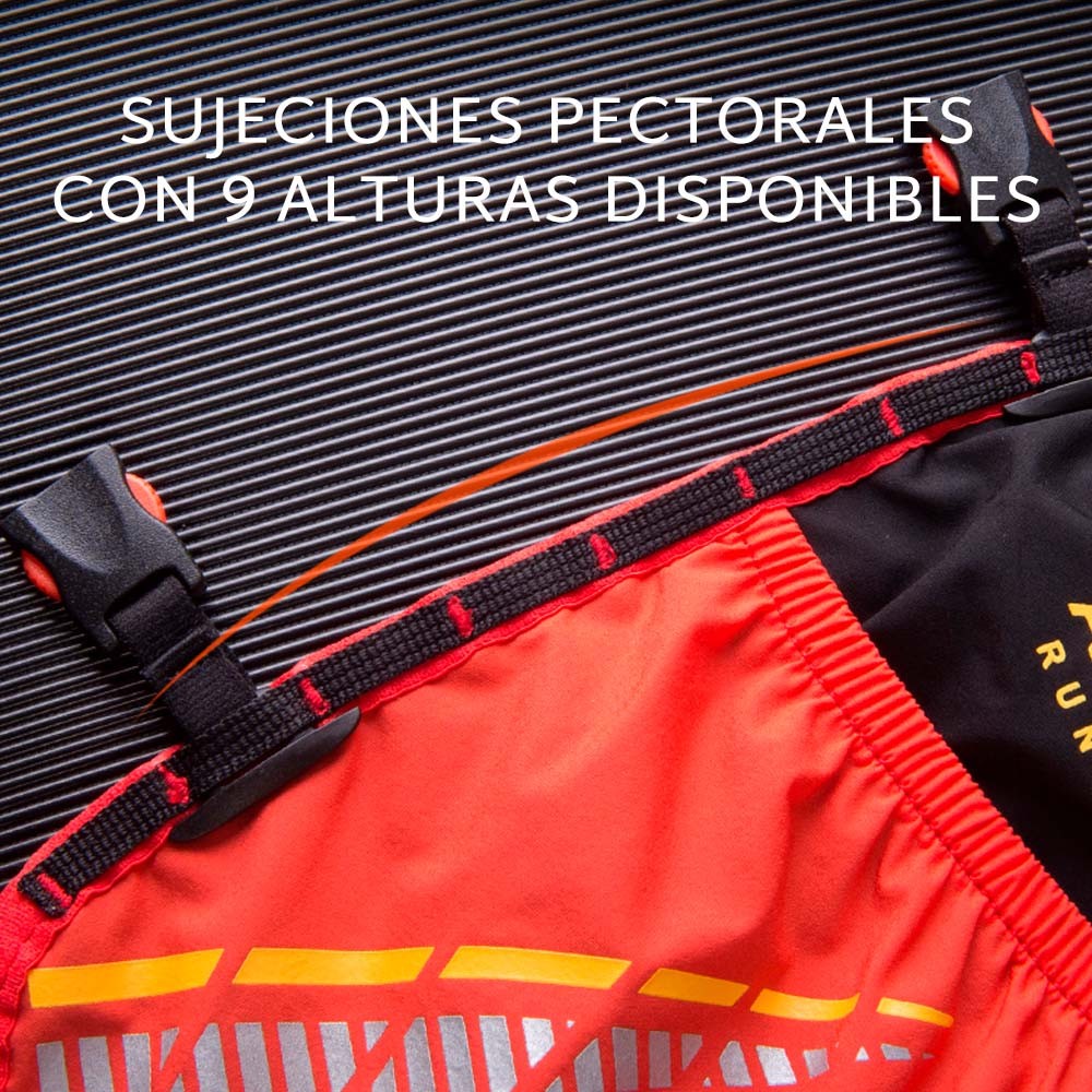 • Ribetes delanteros superiores reflectantes para mejorar la visibilidad y sujeción pajita soft flask en caso de disponer de ellas o tubo hidratación water bag