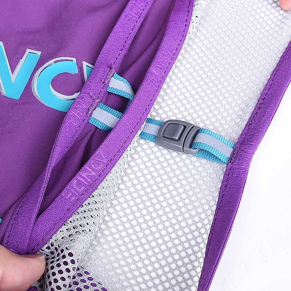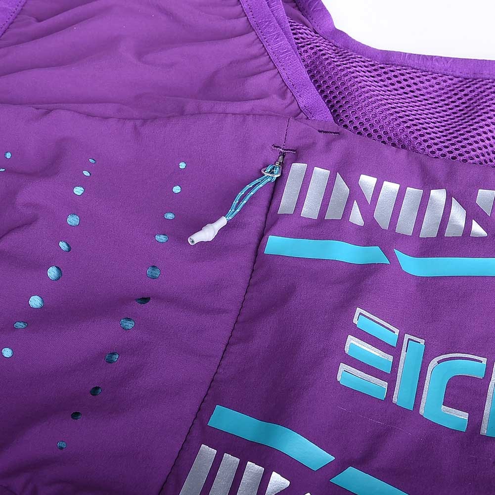 • Dos bolsillos delanteros de malla expandible con capacidad para dos soft flask de 500ml, y goma elastica con tirador reflectante para sujerar el soft flask doblemente, cierre bolsillo elástico y goma elástica