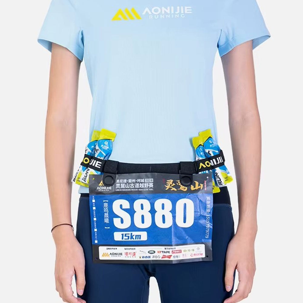 Cinturón portadorsal con enganche magnético, hebilla trasera Duraflex, con un ajuste de longitud en cada lateral y con espacio para 4-6 geles. Color: negro