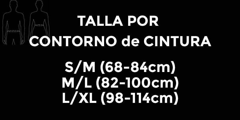 - Tallaje por contorno de cintura: S/M (68-84cm), M/L (82-100cm) y L/XL (98-114cm)