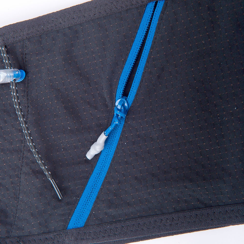 Práctico cinturón multifunción ultraligero, con 4 compartimentos, bolsillo frontal con cierre de cremallera. 2 cintas sujeción para bastones/material deportivo. Incluye Soft flask 250ml. Tallaje por contorno de cintura: S/M (68-84cm), M/L (82-100cm) y L/XL (98-114cm)
